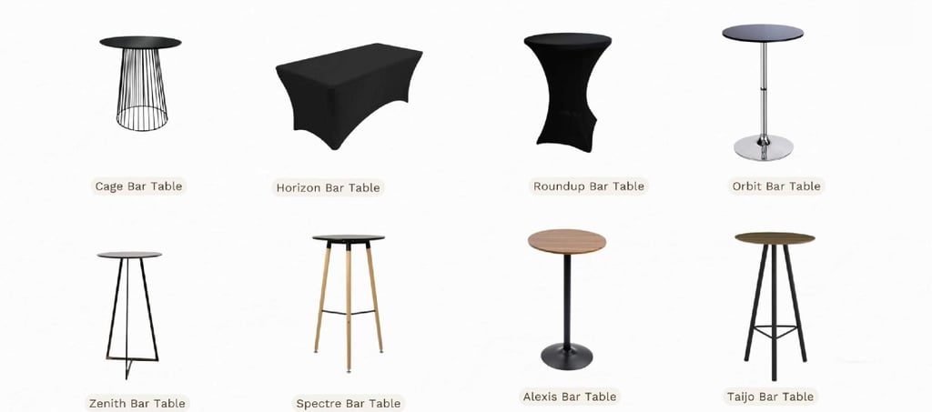 Networking & Cocktail Tables: Our bar tables for events are perfect for networking events, product launches, and cocktail receptions, encouraging interaction and movement.