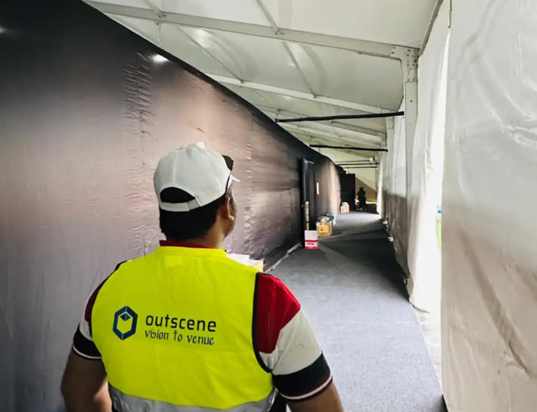 Clearly positions Outscene Global as the key partner responsible for the event's aesthetic and operational success.