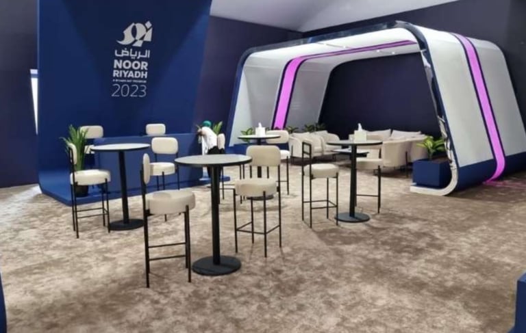 Outscene Global, a premier provider of sophisticated event furniture rental and party furniture hire solutions. Our recent role as the master executors for the prestigious Noor Riyadh festival of light and art stands as a testament to our capability to transform conceptual brilliance into tangible reality. Operating under the guidance of a distinguished film master, we demonstrated how strategic furniture for events is not merely functional but a fundamental component of the narrative itself.